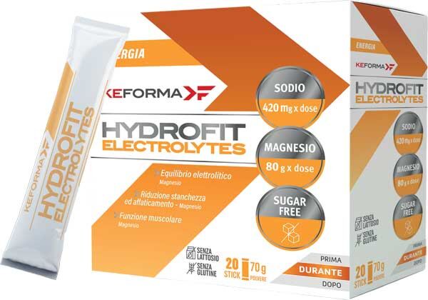 HYDROFIT ELECTROLYTES è un integratore a base di cloruro, sodio e magnesio, che contribuisce alla riduzione della stanchezza e affaticamento, all’equilibrio elettrolitico, alla normale funzione muscolare. Con edulcorante.