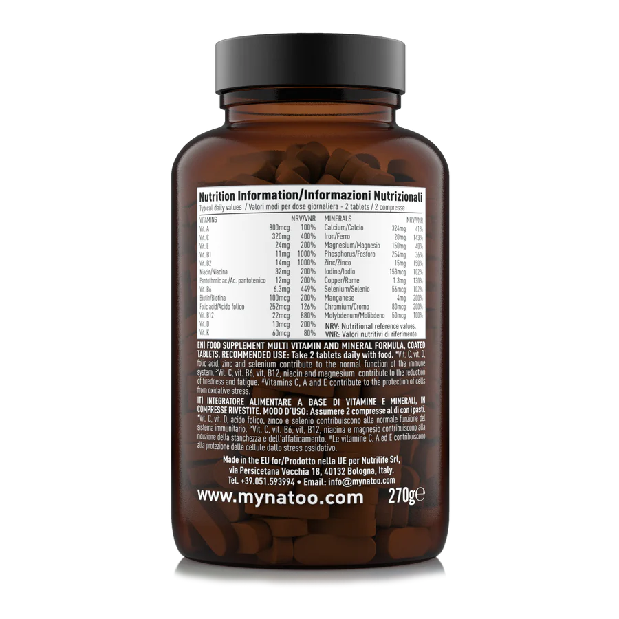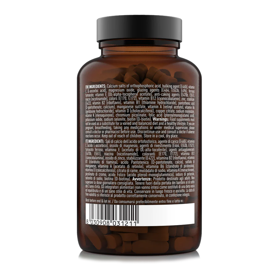 Multivitaminico completo ad alto dosaggio a base di 13 vitamine e 11 minerali.