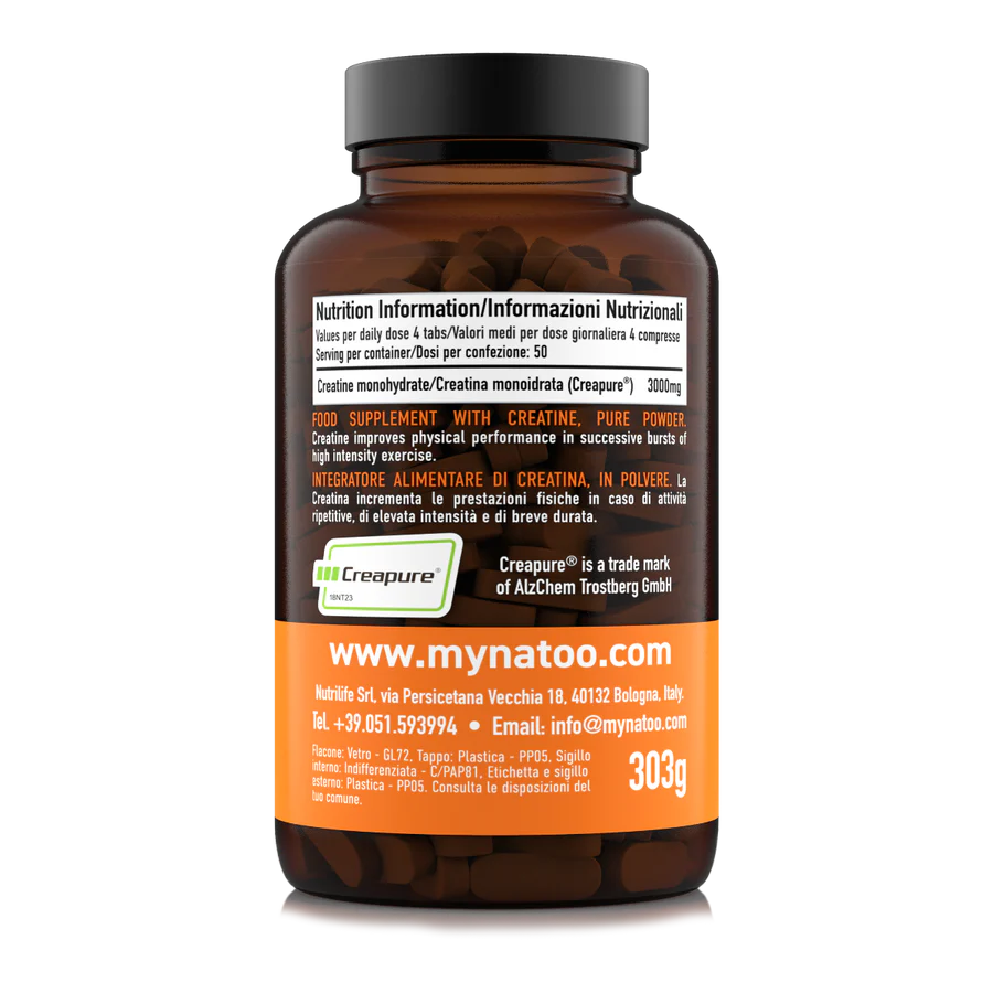 Integratore alimentare in compresse a base di Creatina Monoidrato certificata Creapure®.