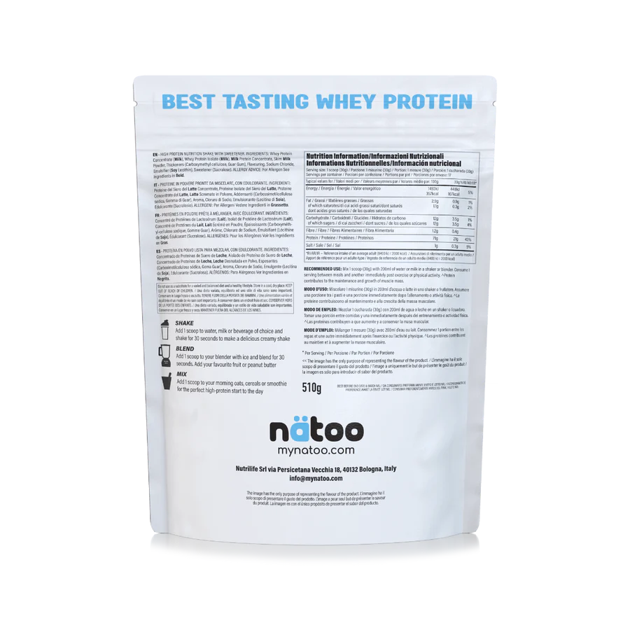 Whey Protein Nätoo è un integratore di proteine del siero di latte in polvere. Le sieroproteine sono molto apprezzate per il loro elevato valore biologico che le rende un alimento perfetto per l’integrazione delle persone attive.